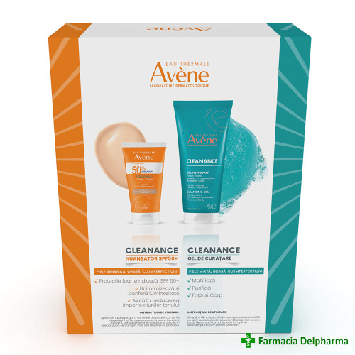 Crema nuantatoare SPF50+ Triasorb x 50 ml + Gel x 200 ml Cleanance Avene, Pierre Fabre