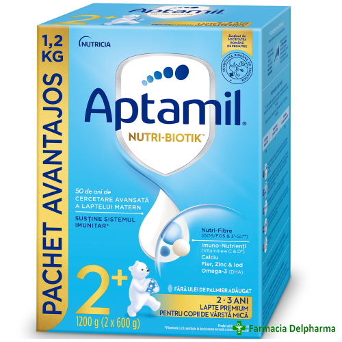 Lapte praf Aptamil Nutri-Biotik 2+, 2-3 ani (2 x 600 g) x 1200 g, Nutricia
