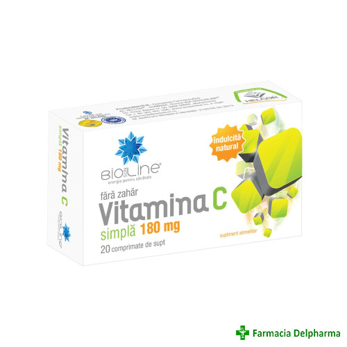 Vitamina C 180 mg x 20 comprimateProprietăți:- contribuie la funcționarea normală a sistemului imunitar;- este un puternic antioxidant;- stimulează formarea colagenului;- ajută la păstrarea sănătății dinților și oaselor;- contribuie la păstrarea sănă...
