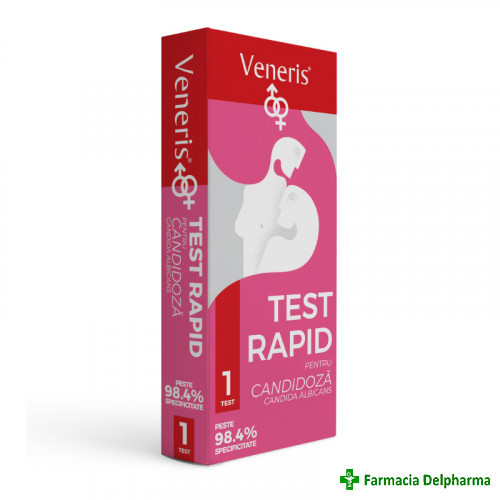 Test rapid pentru candidoza unisex x 1 bucataTestul Veneris pentru candidoză este un test rapid care detectează ciuperca în urină și poate fi folosit cu ușurință la domiciliu, atât de către femei, cât și de către bărbați.Candida albicans este o ciupe...