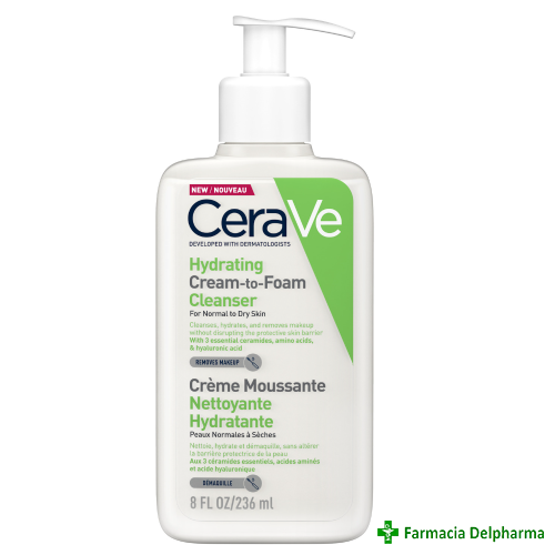 Crema de curatare spumanta si hidratanta pentru ten normal-uscat x 236 mlProprietati:- formulă potrivită pentru pielea normal-uscată, pentru pielea sensibilă și pentru purtătorii de lentile de contact;- non-comedogenic, fără parfum, cu pH echilibrat;...