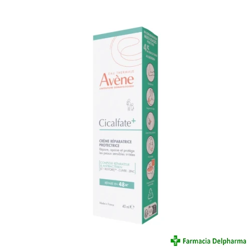 Cicalfate+ crema reparatoare si protectoare Avene x 40 mlProprietati:- curata pielea, calmeaza efectele agresiunilor zilnice asupra epidermei si promoveaza regenerarea;- sulfatii de cupru si de zinc ajuta la limitarea riscului de proliferare bacteria...