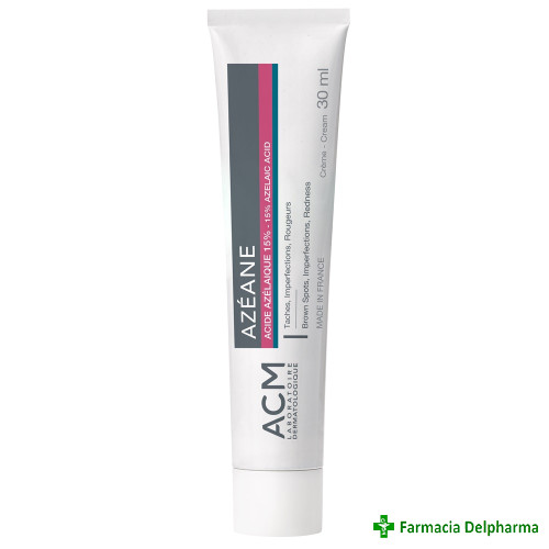 Crema cu acid azelaic Azeane x 30 mlProprietati:- foarte concentrată în acid azelaic (15%), un ingredient activ cu proprietăți multiple, crema îmbunătățește aspectul general al pielii;- ajută la dispariția petelor brune, reduce imperfecțiunile pielii...
