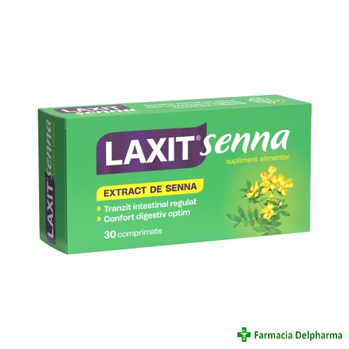 Laxit Senna x 30 comprimateBeneficii:Glicozidele hidroxiantracenice din senna au proprietatea de a accelera tranzitul intestinal prin stimularea mișcărilor peristaltice ale colonului și intestinului subțire, generând efectul laxativ. Efectul detoxifi...