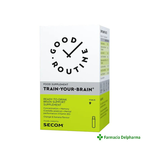 Train Your Brain Good Routine x 9 fiole buvabileProprietati:- fara adaos de ingrediente stimulante;- formula sinergica – 9 neuro nutrienti cheie sustinuti prin numeroase cercetari stiintifice, precum Citicolina, extracte standardizate din Bacopa monn...