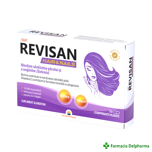 Revisan Hair & Nails x 30 comprimateProprietati:Este un complex ideal de vitamine și minerale care conține nutrienți cheie, cum ar fi peptide de colagen, vitamine, minerale, aminoacizi și extracte naturale antioxidante- reprezintă o combinație un...