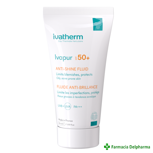 Fluid antistralucire SPF 50+ Ivapur x 50 mlProprietati:- este o cremă cu protecție solară foarte ridicată pentru pielea sensibilă;- protejează celulele pielii de efectele mutagene ale radiațiilor UVA și UVB. - protecție solară foarte ridicată UV...