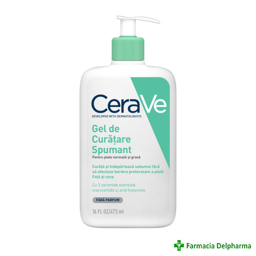 Gel curatare spumant piele normala/grasa x 473 mlProprietati:- curata delicat in profunzime si reimprospateaza pielea, in timp ce indeparteaza excesul de sebum, impuritatile si machiajul, fara a afecta bariera cutanata. &n...