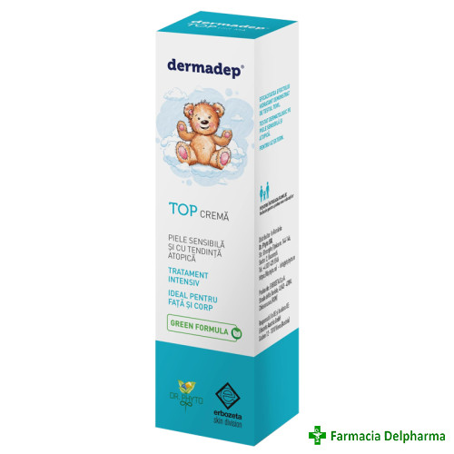 Dermadep Top crema piele uscata x 50 mlProprietati:- confera o actiune hidratanta, emolienta, protectoare si calmanta, contribuind la reducerea senzatiei de disconfort si mancarime cauzate de pielea uscata si iritata;- datorita sinergiei ingredientel...