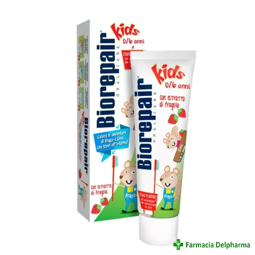 Pasta de dinti capsuni 0-6 ani Biorepair Kids x 50 mlPastă de dinți pentru copii 0-6 ani ce protejează dinții de apariția cariilor, îi face mai puternici și mai sănătoși.Singura pastă de dinți ce conține complexul microRepair care luptă împotriva car...