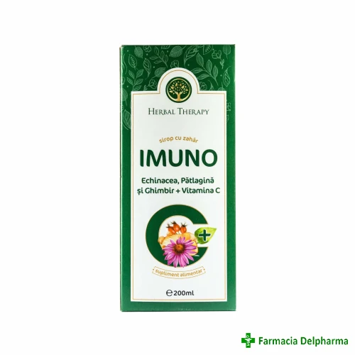 Sirop Imuno Echinacea, Patlagina, Ghimbir + Vitamina C x 200 mlSupliment natural pentru protejarea imunității și calmarea