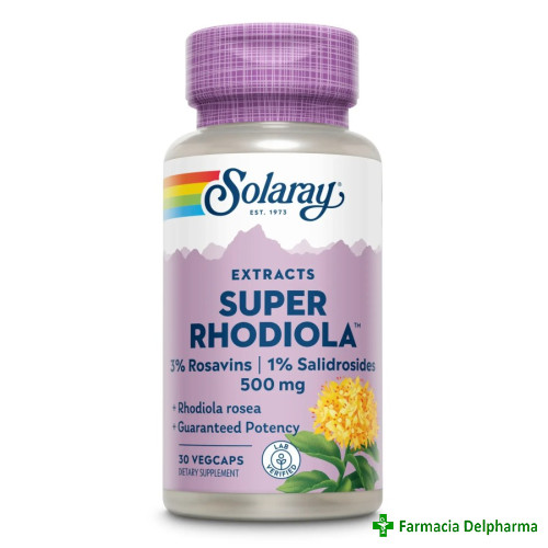 Super Rhodiola 500 mg Solaray x 30 capsuleSusține funcțiile organismului, ajutându-l să se adapteze fizic, psihic și imunitar.Proprietăți:- extract standardizat din rădăcina de Rhodiola rosea, 500mg/capsulă- garantat 3% rozavine și 1% salidrozide- su...