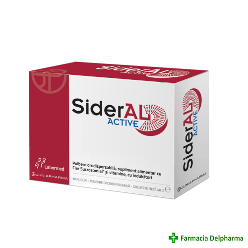 SiderAL Active x 30 plicuri, SolaciumProprietati:- supliment alimentar cu fier sucrosomial, vitamina C si vitamine din complexul B, utilizat pentru compensarea deficitelor nutritive sau in momentele in care exista o nevoie crescuta pentru acesti nutr...