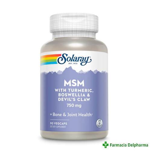 MSM 750 mg Solaray x 90 capsuleProprietăți:- poate ajuta in a proteja oasele, tendoanele, ligamentele, părul, unghiile;- poate ajuta in a relaxa vasele de sânge și a crește fluxul sanguin în țesuturi;- poate contribui la reducerea n...